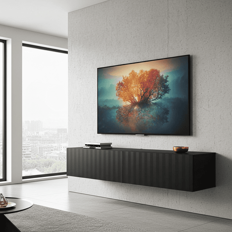 Ambrelle Black Slat Effect Wall Mounted Floating Wide 154cm Large TV Entertainment Unit 11014660