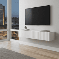 Ambrelle White Slat Effect Wall Mounted Floating Wide 154cm Large TV Entertainment Unit 11014661