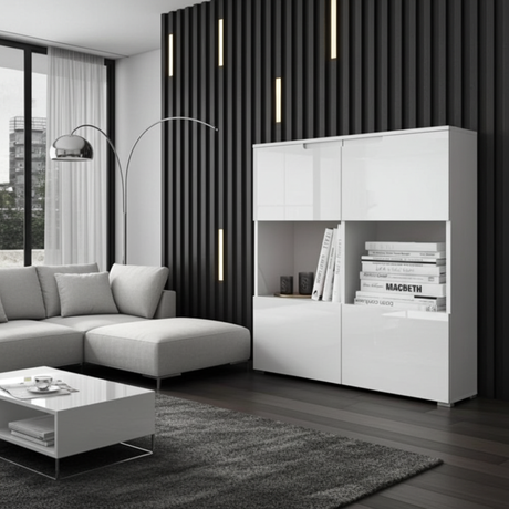 Serene White High Gloss Tall Sideboard Storage Unit S19