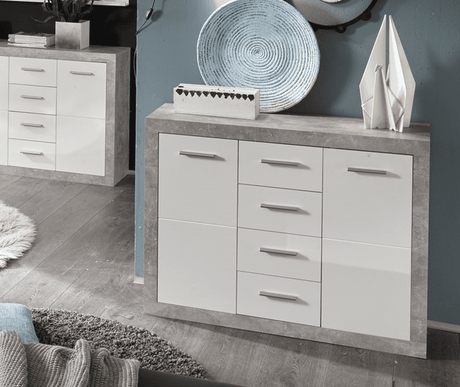 Cementara Concrete Grey and White High Gloss Large Sideboard with Drawers P9BBGS45