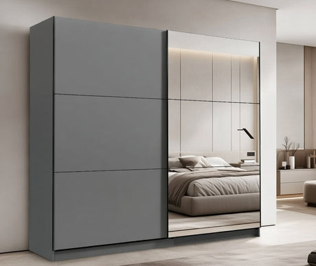 Palma Grey And Mirrored Sliding Door Wardrobe 180cm- 11011120