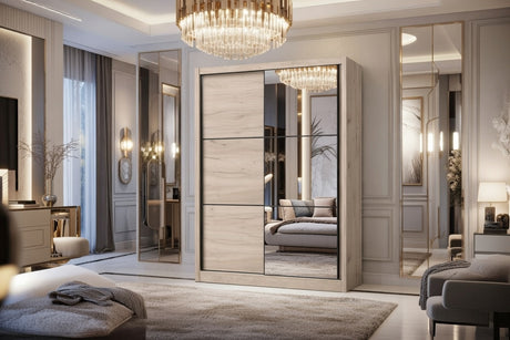 Selina Mirrored 4 Door Grey Oak and White Gloss Wardrobe With Shelves And Hanging Space - 11008706