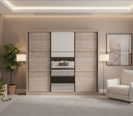 Palma Large Grey And Mirrored Sliding Door Wardrobe -11008287