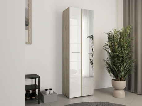 Lucca White Gloss And Oak Effect Slim Narrow Shallow Depth Wardrobe - 11008560