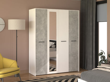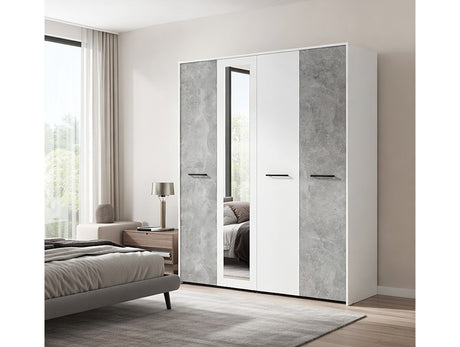 Varadero White And Concrete Grey Effect 4 Door 157cm Mirrored Wardrobe - 11011615rz