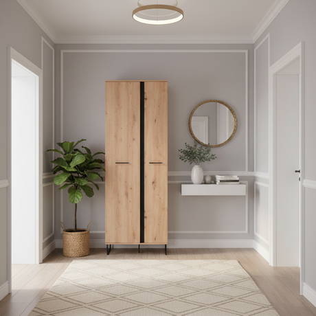 Elliot Artisan Oak Tall Shallow Narrow Slim Wardrobe - 11008256