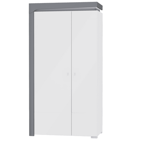 Serava White High Gloss And Grey 2 Door Wardrobe With Shelves and LED Lights - WHS2-NE013