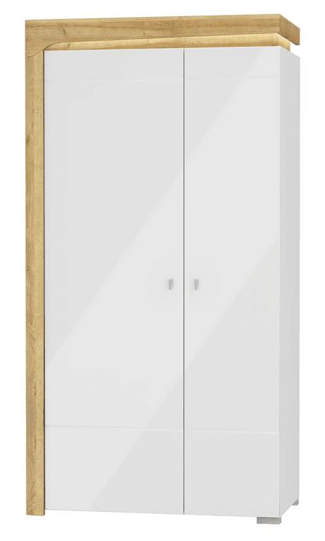 Rio White High Gloss And Oak 2 Door Wardrobe With Shelves and LED Lights - THS-2-N8C