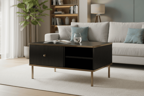 Camelienne Slatted Black And Gold Elegant Storage Coffee Table 3150rz